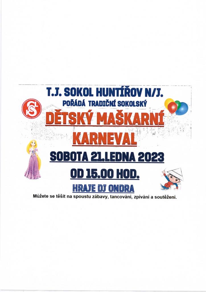 Pozvání TJ SOKOL Huntířov n.J. na dětský karneval a Šibřinky