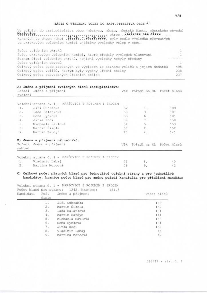 Výsledky komunálních voleb do zastupitelstva obce Maršovice konané dne 23.-24.9.2022